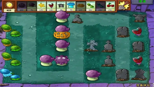 4、通过购买特殊植物和工具,玩家需要尽自己所能干掉僵尸。