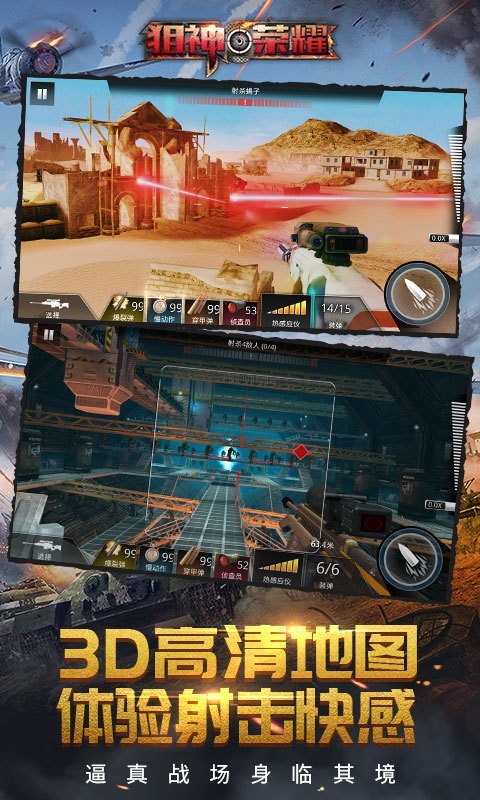 极真实的3D图像让你置身原始森林,现代都市,荒野沙漠进行反恐战斗。