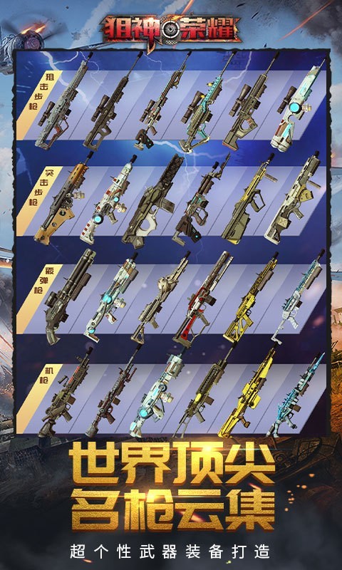 狙击步枪、突击步枪、散弹枪、重型机枪自由驾驭切换。