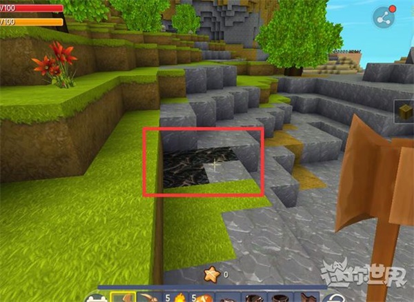 5、找到材料之后,将游戏视角移动到石头上,然后长按石头,就可以自动获取材料了;