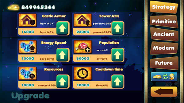 6、你也可以在首页,点击upgrade来升级你的建筑物;