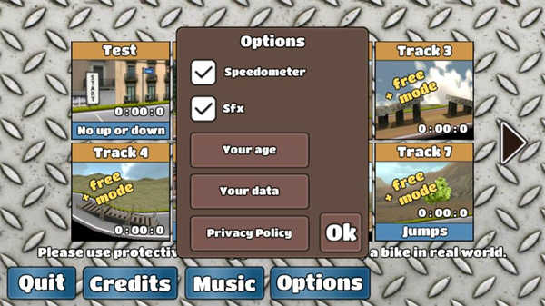 在这里,您将穿越具有挑战性地形的不同轨道。您现在还可以享受许多技巧并完全自定义您的自行车和骑手。