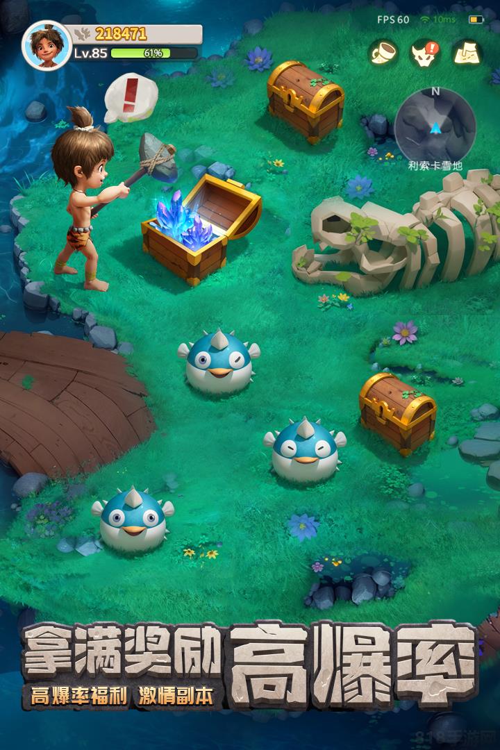 重现石器部落风格,这里是一万年前的原始公园!3DPBR技术完美还原了古代经典,手持石矛,穿着兽皮,探索古代秘密宝藏,与原始可爱的宠物重建你的部落,扩大家园!
