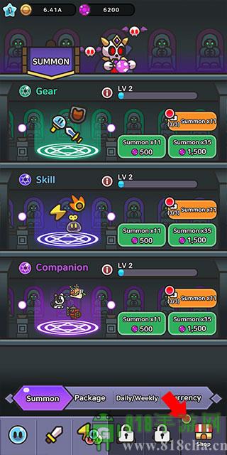 3、装备可以点击右下角进入商店界面,第一个池子就是装备池,第二个则是技能池,第三个为宠物池,大家根据需要抽取即可