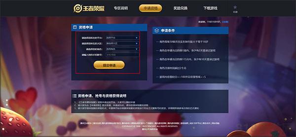 1、首先到王者荣耀官方网站体验服专区,点击申请资格。