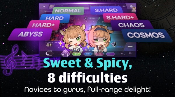 音乐歌曲丰富,难度不一,玩家可以按照自己情况进行闯关;