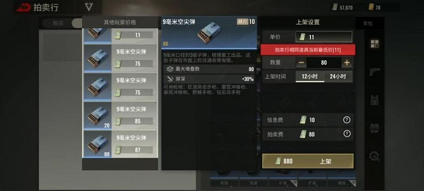 2、当然,一些品质比较高的物资,玩家也是可以通过拍卖的方式售卖,这样售卖的价格会比正常买卖更高一些。如果玩家想要快速赚钱,好的办法就是当一名搬砖客,每局游戏开局都只带一把手枪进去,然后开始搜索物资,尽量避免与敌方交战,然后获取到的物资在成功撤离之后都直接售卖,累计几次之后,就能发家致富啦。