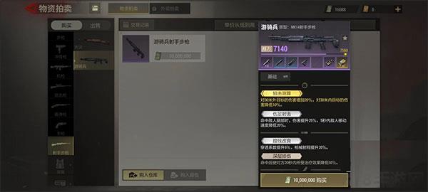 再看下游骑兵,原型为mk14.同样是非常经典的武器,在属性方面伤害48点和天灾步枪不相上下,但在其他属性方面都要比天灾更强。包括射速,弹夹容量,后坐力和散布等,甚至包括射程都要更远些。这些综合起来使得游骑兵无论在各个方面都处于碾压状态的优势,所以选择时候并没有太多顾虑,直接拿下游骑兵,虽说出现几率比较低些,但是多开些箱子总归能够获得。