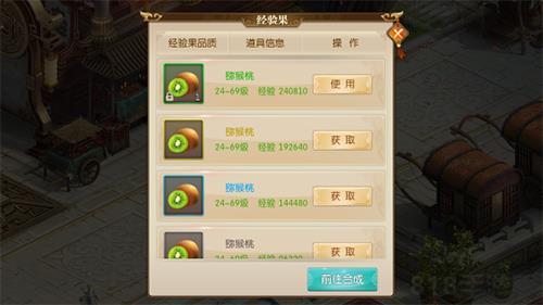 2、每5个相同种类,相同品质的经验果可以合成为相同种类高一档品质的经验果,品质从低到高为:白色,蓝色,黄色,绿色。