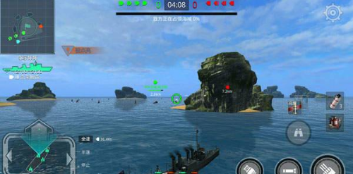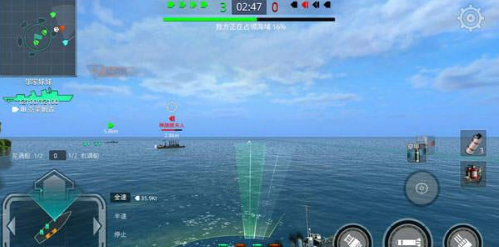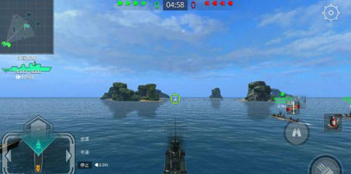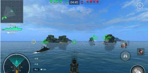 航行操作是通过上下速度档位和左右方向键来实现的,玩家只需要通过上下键在全速、半速、停止、倒船四个档位中进行选择,使用左右键任意调整方向就可以实现战舰的航行,简单的操作却能让你体验真实的战舰航行,享受海战带来的激情。