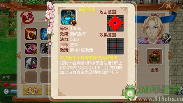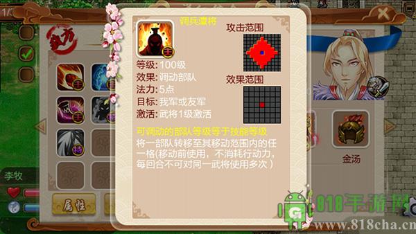 李牧,他的调兵遣将技能。可以帮你解决走位问题,让你走错位置的人重新走一次。也可以让你的将士向前冲锋,最重要的是,在不消耗回合的时候,就可以成功地进行移位,可以更好地排兵布阵。十足优秀的统帅!!!