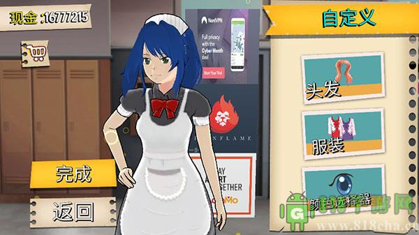 1、首先在手机上打开樱花高校模拟器无限金币版,设置好自身的形象,拥有无限金币,随意更换服装;