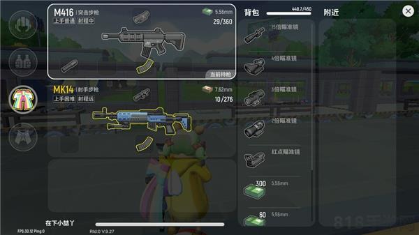 8、推荐新手玩家选择全息、三角握把、M416和Scar—L,没其他倍镜的情况下单点选择红点,很多新手玩家用红点扫射的时候压不住枪。全息你只需要把镜头移动到中心的圈里就OK了。三角握把可以提升开镜速度,垂直更适合扫射。冲锋枪在前期的近距离的对战中比较有明显的优势,akm和sks建议在没有选择的情况下使用(后坐力较大)。