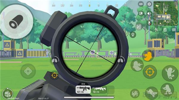 2、64km的大地图,有城镇,有野点,有树丛,有草丛,每局支持100名玩家对战。