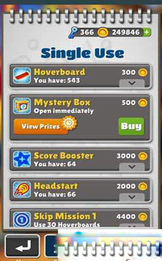 通过开启神秘盒子和商店购买,都可以得到喷气包,小包可持续250m,大包为1000m,不过该道具只能在开场时使用,而且在空中不能获得金币。