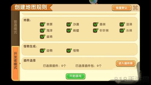 1、点击创造新世界,选择【开发者模式】。