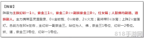 95级两个三人主道阵容,主子牙副太子,主角红唐僧,1☆貔貅、0☆火龙、0☆宝莲灯、0☆紫金元神,元始天书。位置如下图所示。350w攻击,220+灯28增伤,毕业概率高。400w攻击,主力破天,紫金攻击法宝1☆,稳定毕业。