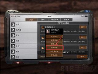5、下图页面上方有四个功能:频道、通知、最近聊天和联系人。玩家也可以点击进入[联系人]页面添加好友。