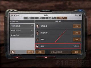 6、之后可以在【联系人】页面搜索找到想加好友的玩家,如下图所示。