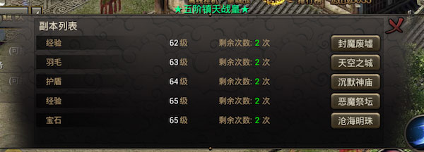 经验副本是相当重要的经验获取途径,烈焰龙城oppo版中有两个经验副本,玩家可以根据等级挑战,简简单单挂机就能得到海量经验,有条件一定要多倍领取,经验副本每日必做,快速升级轻轻松松