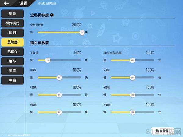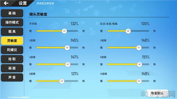 在控制灵敏度的案板上先自己预调一下你觉得合适的灵敏度。