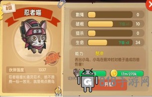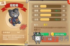 橘猫作为前期较为容易获取的宠物之一,不但拥有不俗的破坏棍体的实力,还带有一定的击杀能力,非常的全能。是前期不可多得的好帮手