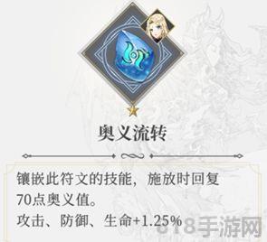 1、奥义流转符文:蓝色符文,作用是镶嵌该符文的技能,释放时回复XX点奥义值。玩过泰雷这个角色的玩家都知道,泰雷的大招是需要消耗2格奥义(2000点奥义值),所以需要先锋位帮助泰雷积攒奥义,在先锋位伤害较低时,往往一套技能后攒不足2格奥义(算上换人后泰雷前三个技能能恢复的奥义值),会让泰雷上场时打不出奥义,则此种符文镶嵌在先锋技能上,既不会因为输出低浪费进攻性符石的效果,还可以完成辅助后续角色爆发的作用。