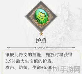 3、护盾符文:橙色符文,这个符文明显针对高血量英雄才会有效果,实际上一般也是适合迪罗赞、木禅这类防御能力强的英雄使用。