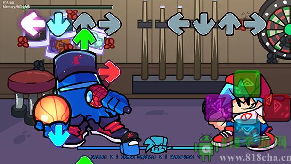 4、正式进入游戏后,游戏的玩法有点类似QQ炫舞,地下会弹出对应的方向音符,我们需要控制方向键点击对应的音符,底部有进度条谁能把对手逼到底线即可赢得胜利。