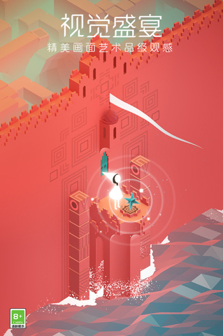 1.纪念碑谷官方安卓或ios完整版都拥有精美的美术画面和极具创意的基于3D空间的玩法,完美融合了艺术与游戏元素。