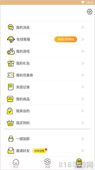 4、在我的功能模块,这里可以练习客服、充值、领取礼包等。