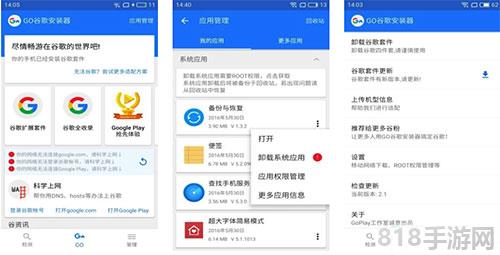 谷歌三件套官方版,亦即Go安装器,是你进入谷歌世界的必备神器。这个手机框架软件包含谷歌服务框架、商店和Google账户管理程序三大组件,对于那些内置不支持谷歌框架的手机机型来说,它几乎等同于救命稻草。一旦安装并运行这三件套,你将告别闪退的烦恼,畅快运行各类游戏软件。而它的最大亮点在于一键自动安装和免ROOT功能,完美适配小米、华为、魅族等众多国产手机品牌,让你无需复杂操作,即可尽享谷歌服务的便捷。想要拥抱谷歌世界的你,还等什么?快来下载体验吧!