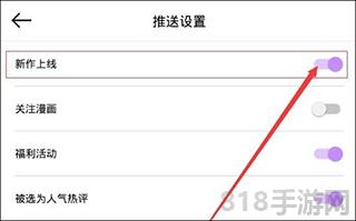 3、在推送设置页面上,我们可以看到[新在线]按钮,点击按钮点击黑暗以解除更新通知!