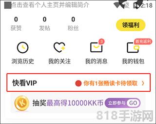 2、[快看VIP]在我的页面上。