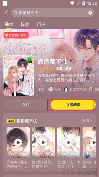 2、找到你想看的漫画,选择“立即阅读”。