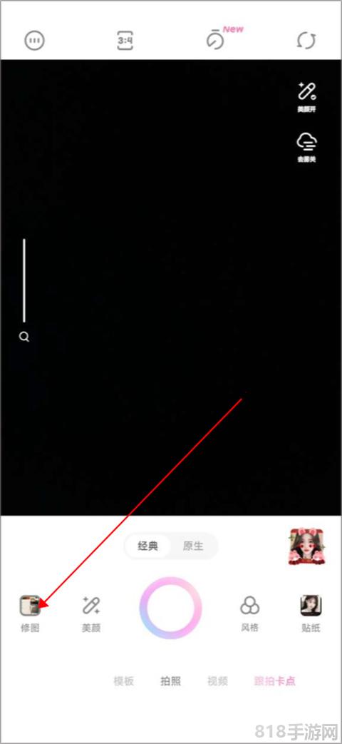 1、首先,我们打开一个甜蜜的相机,点击左下角的地图修复
