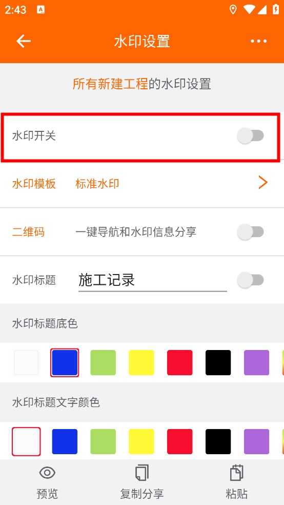 4、在水印设置界面,点击水印开关,即可关闭水印。