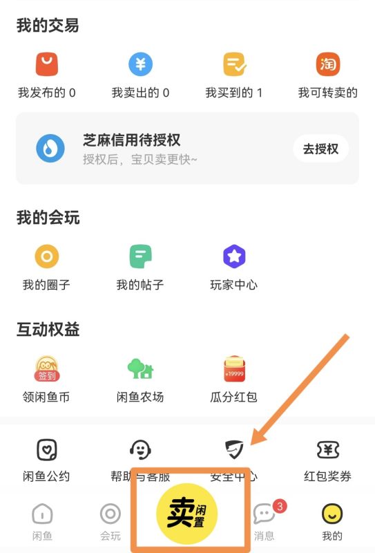 1.打开闲鱼主页面,点击中间的按钮,如图所示: