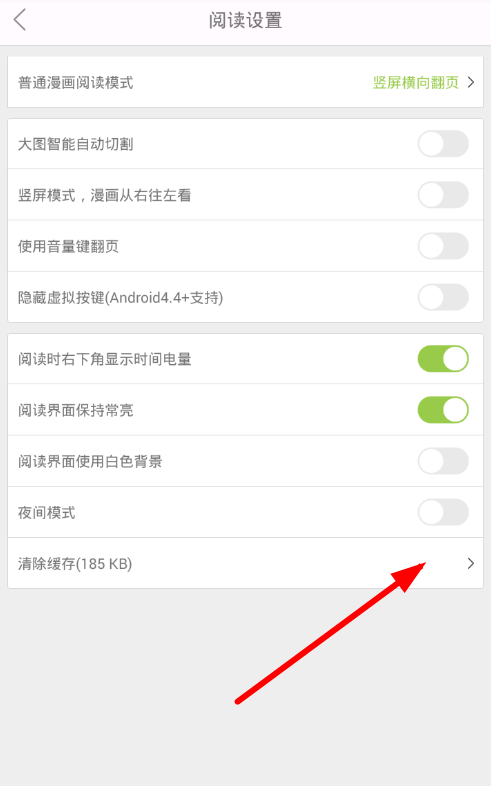 4、最后在阅读设置页面里直接点击最下方的“清理缓存”功能,就能够直接清除多余的缓存文件了。