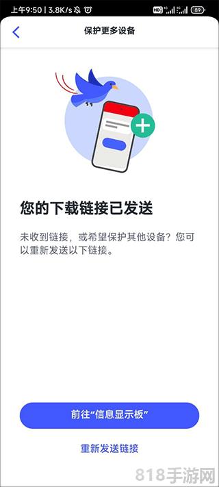 这个时候分享出去,等用另一台设备点击下载成功后就可以开始保护了。