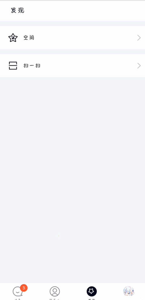 6、点击进入发现界面可进入空间,还可以使用扫一扫功能。