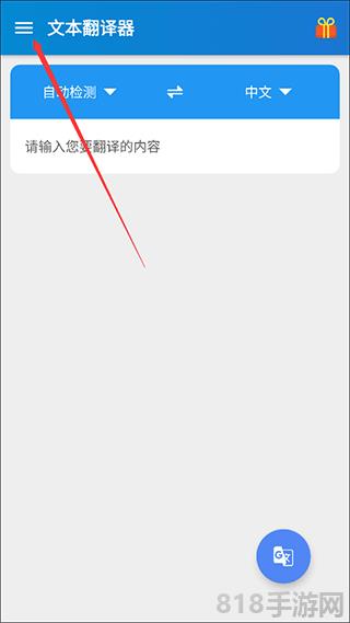 1、打开文本翻译器app后,点击页面左上角的图标;