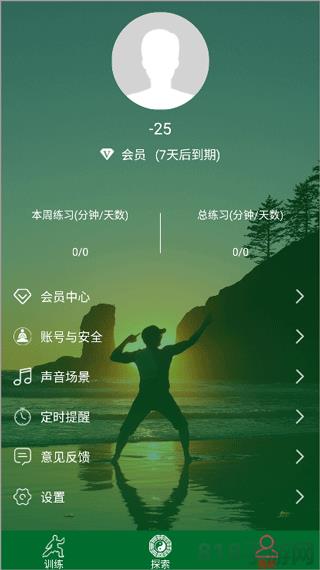 3、在我的界面中,点击声音场景可以切换训练界面背景