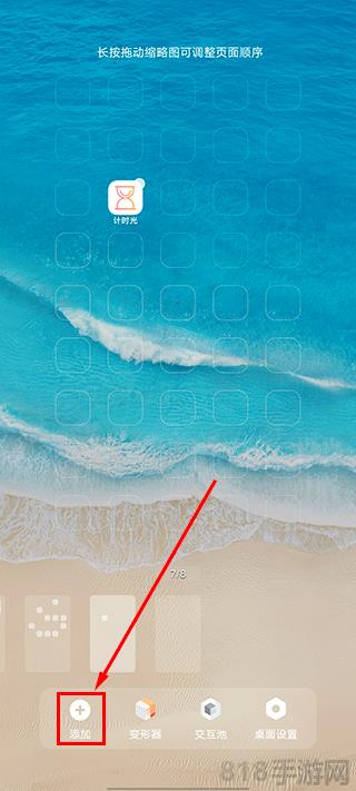 1、手机桌面页面双指捏合,或长按桌面空白处,进入桌面编辑状态,找到【添加】按钮(窗口小工具/添加工具/添加小部件/桌面挂件/插件,各品牌叫法不一)并点击