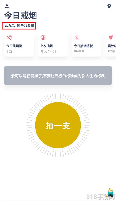 今日抽烟打卡软件,专注于戒烟和减少烟草摄入,提供了简洁易用的界面和丰富的功能。通过每日提醒,帮助您养成良好的戒烟习惯,减少吸烟次数。此外,软件还提供了丰富的戒烟知识和技巧,帮助您逐步摆脱烟草依赖。通过实时监测和记录您的吸烟情况,软件将为您提供个性化的戒烟建议,确保您在戒烟过程中更加顺利。这款软件不仅适合烟民们使用,也适合家人和朋友推荐给那些正在考虑戒烟的人。快来加入我们的健康生活,一起远离烟草的危害吧!