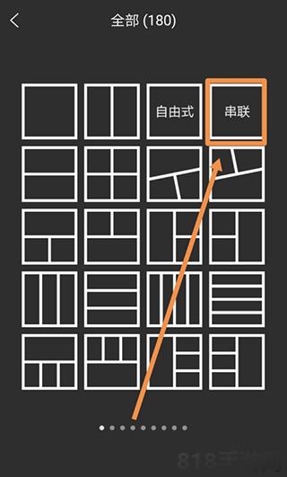 3、在拼图界面之后点选箭头指向的串联标志,串联指的是长图拼接。