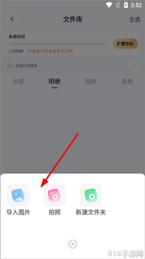 2、点击添加符号,创建文件夹,选择手机中想要导入的照片或图片;