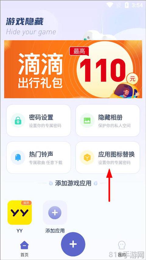 1、用户打开隐藏游戏计算器app,在首页点击应用图标替换;