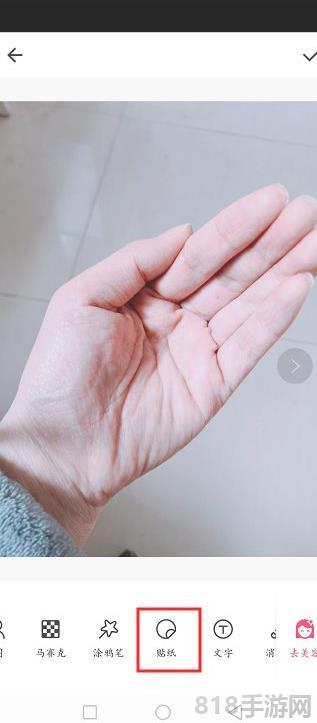 退出,然后用图片美化打开另一张图片,点击底部的贴纸按钮