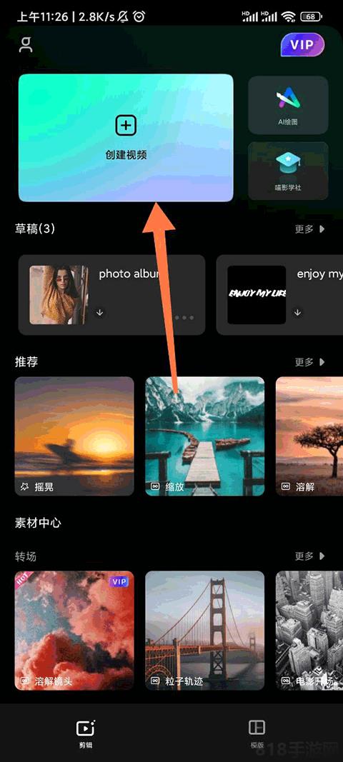 1、进入万兴喵影官方版,点击主页的创建视频。